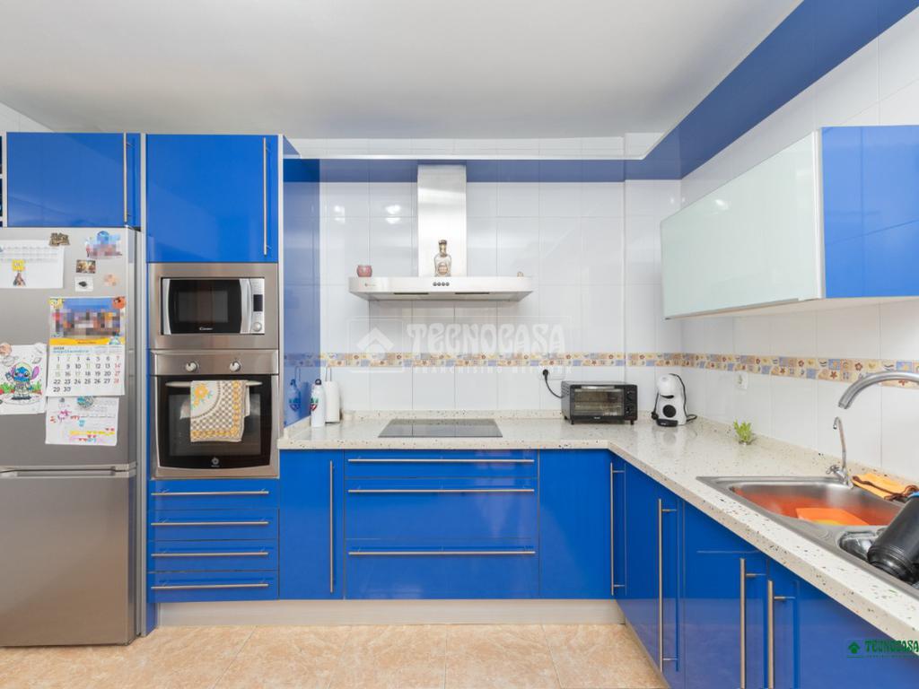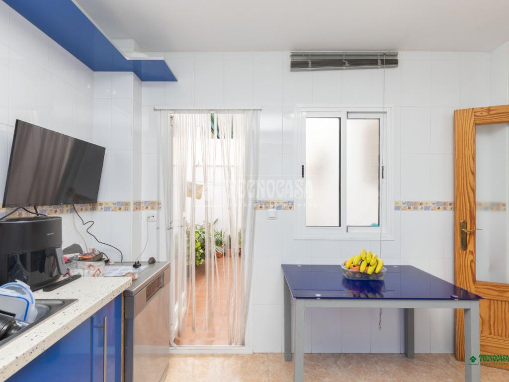 La cocina, amplia y luminosa, con espacio suficiente para crear un ambiente acogedor de reuniones familiares y con salida directa a un patio interior que aporta frescura y versatilidad.